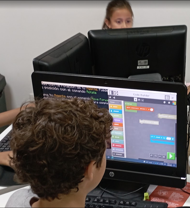 Espacio dedicado donde los niños exploran las posibilidades de Scratch paso a paso. Aprenden a detectar movimientos, reconocer colores con la cámara y programar respuestas que hacen que sus proyectos cobren vida de forma mágica.